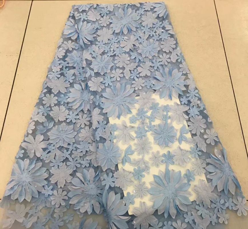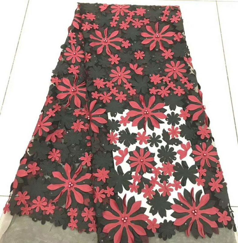 Vải ren lưới thêu với hoa, hạt và sequin, được khâu bằng máy thêu vi tính bằng cách sử dụng các mẫu được số hóa bằng phần mềm thêu. Trong thêu máy, các loại "lớp nền" khác nhau sẽ thêm kết cấu và thiết kế cho thành phẩm. Hạt và sequin được khâu thủ công trên vải ren. Vải ren hoa 3D phù hợp để trang trí phụ kiện may mặc, quần áo, váy, váy, quần áo trẻ em, v.v. Mẫu thiết kế vải ren hoa 3D chủ yếu là hoa và lá, tinh tế và thanh lịch, được trao cho những người lăng nhăng rất được phụ nữ ưa chuộng.