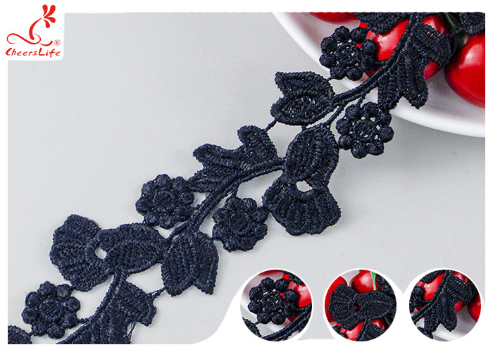 Viền ren thêu hoa đen hòa tan trong nước với thuốc nhuộm có độ bền màu cao